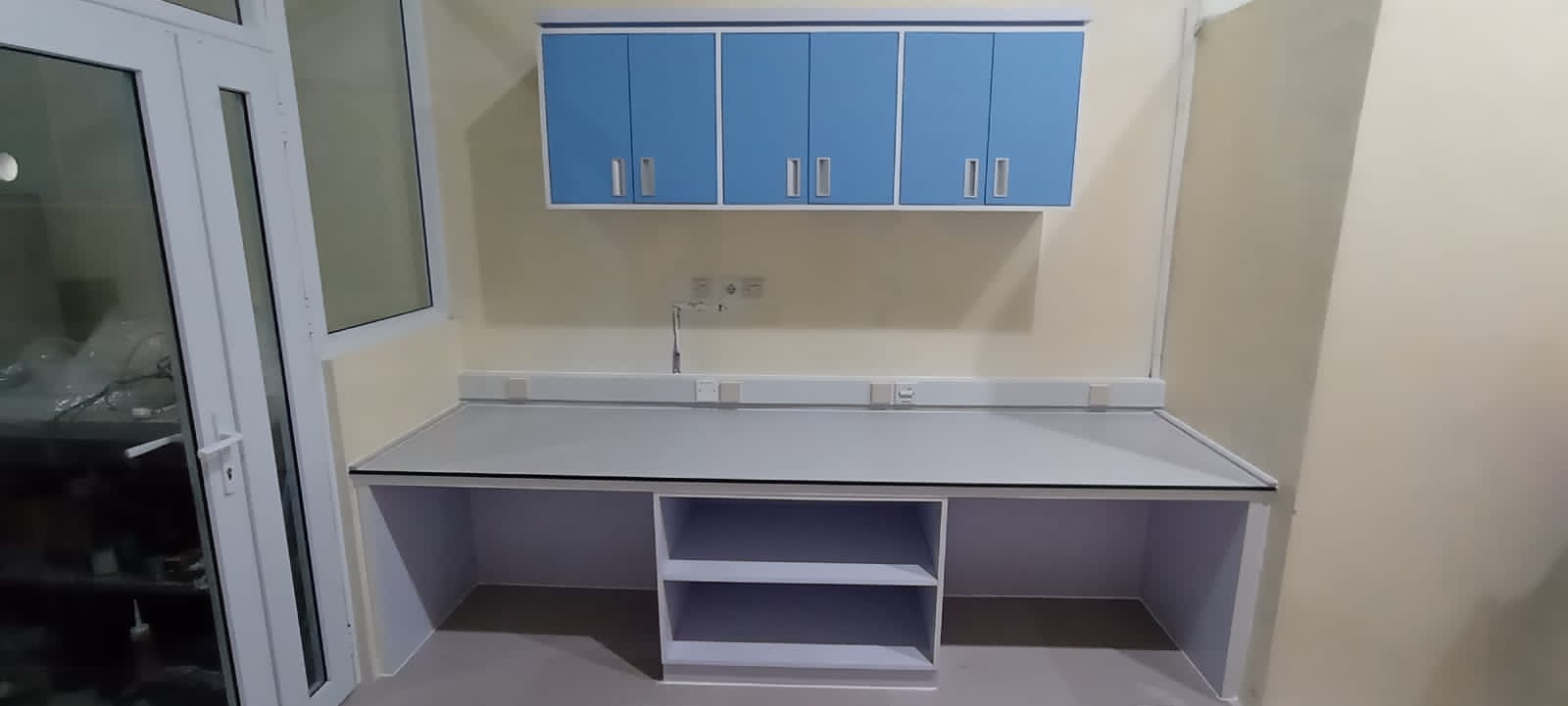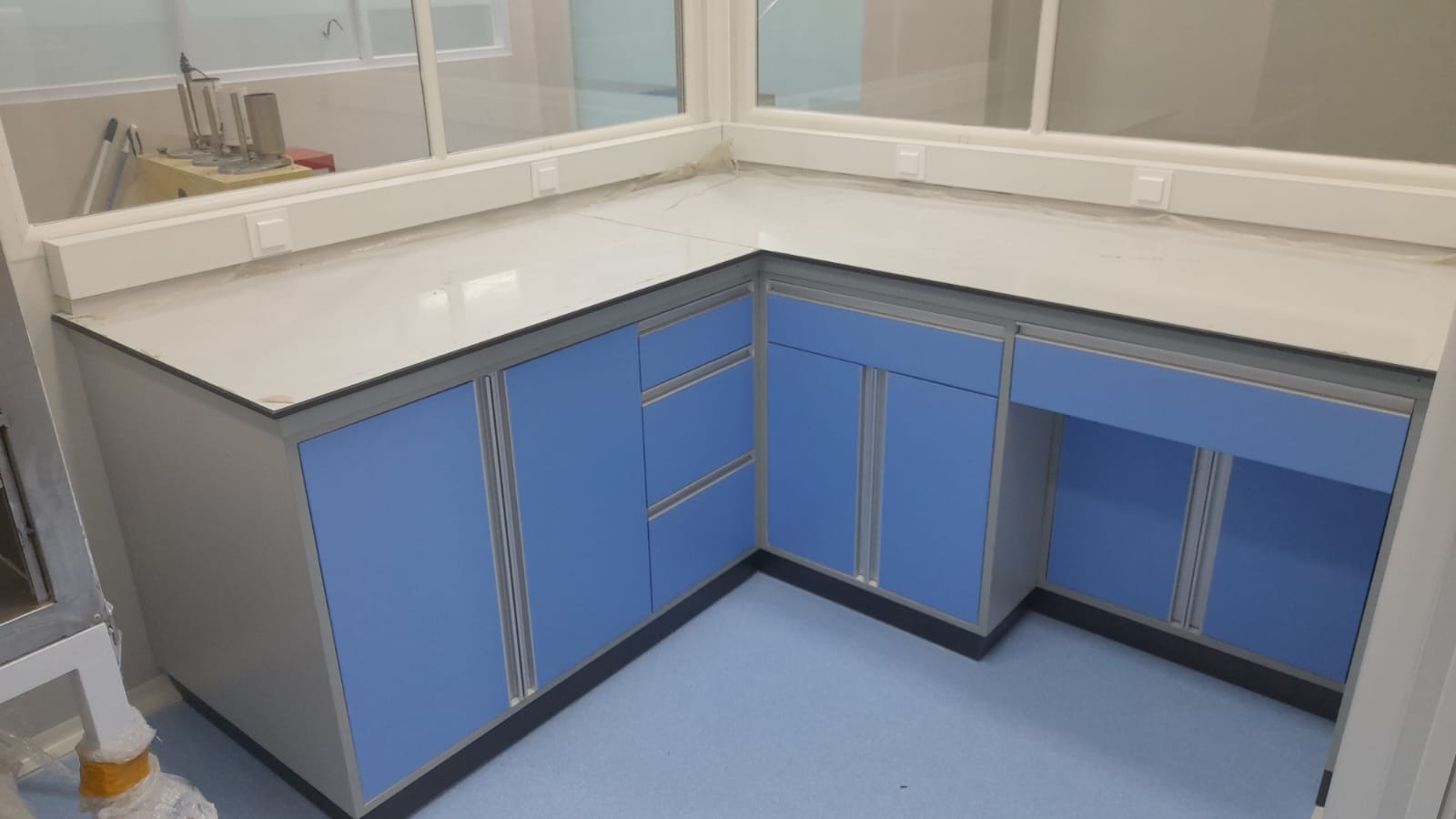 Menggunakan struktur body cabinet multiplex dilapisi HPL yang tahan lembap dan mudah dibersihkan, serta top table phenolic resin 13mm anti-kimia dan anti-bakteri, furnitur ini menjawab tantangan lingkungan kerja yang membutuhkan standar kebersihan tinggi.